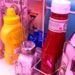 Al entrar, nos recibió una chica que nos acompañó hasta nuestra mesa. Tienen de diferentes tamaños (lógico) lo que ocurre es que las de dos comensales son extremadamente pequeñas, lo que hará que durante la cena te puedas entretener intentado que todo entre en la mesa sin que nada se caiga al suelo. En la mesa tienen las cartas de batidos y postres, el ketchup, la mostaza, la mayonesa, la sal, un surtidor de pajitas,… mmm… creo que nada más; lo dicho, muchas cosas para poco espacio. Otra de las cosas que es un poco excesiva es la cantidad de luz, tal vez al ser una hamburguesería recién abierta aún no lo han calculado bien, así que lo achacaremos a eso.